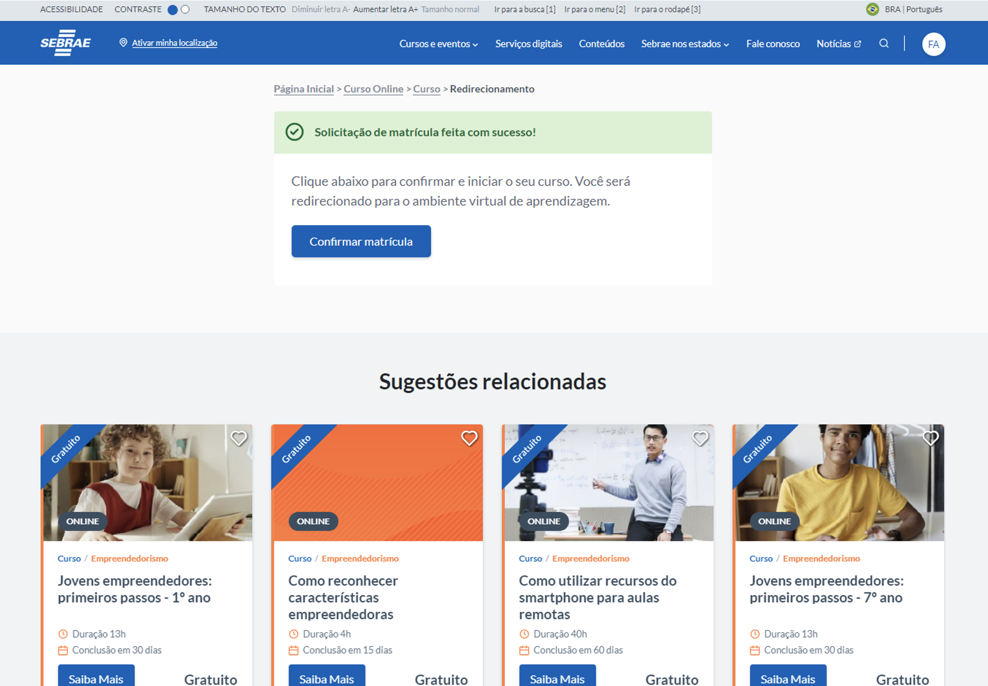 - OBS.: O portal do SEBRAE terá uma central de ajuda, caso haja alguma dificuldade para a navegabilidade do curso.
